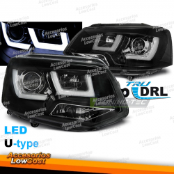 FAROS VW T5 10-15 NUEVO MODELO TRU DRL NEGROS
