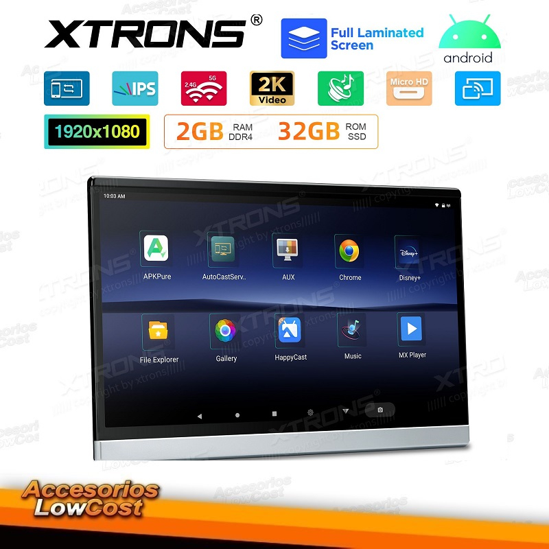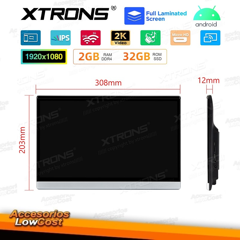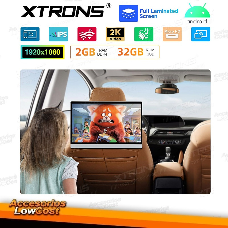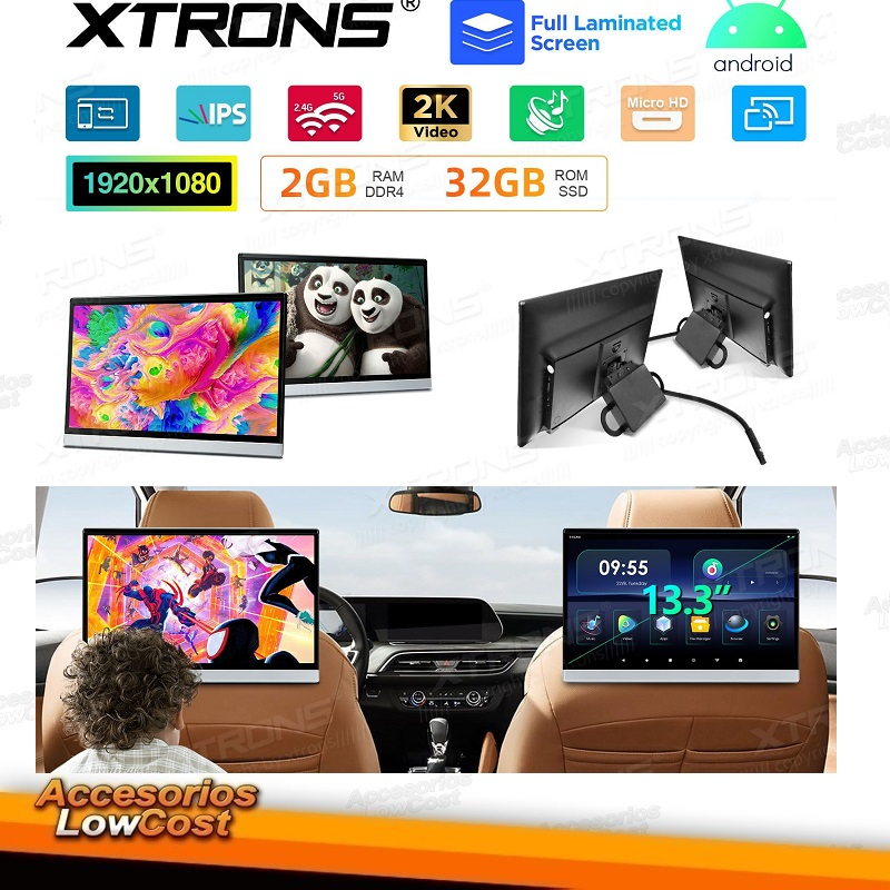 Pantalla para reposacabezas IPS FHD de 13,3" y Android para asiento trasero
