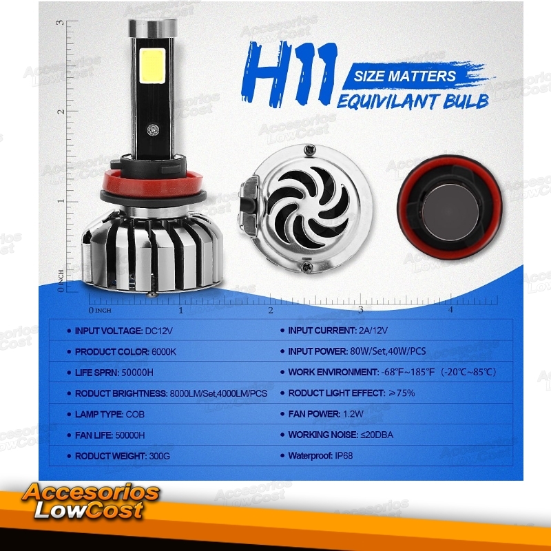 KIT DE BOMBILLAS LED H11, N7 6000K.