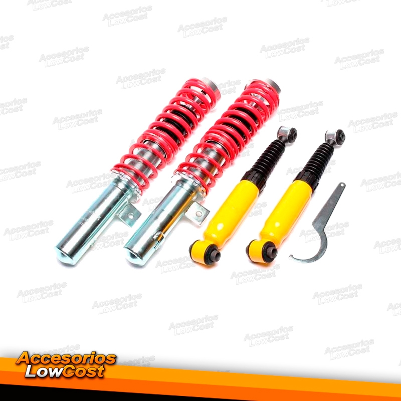 Nuevo modelo de doble muelle, regulables en altura (hasta -70 mm) y en dureza, variable según altura; cuanto más rebajadas, más duras, tanto en eje delantero como en eje trasero.Proporcionan un mayor agarre y un mejor paso por curva. Mejora tu experiencia de conducción con estos amortiguadores deportivos regulables, a la vez que cambias la imagen del coche.