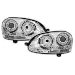 Faros con OJOS DE ANGEL y LUPA para vw golf 5 1k a partir de 10/03 .Fondo Cromo.
