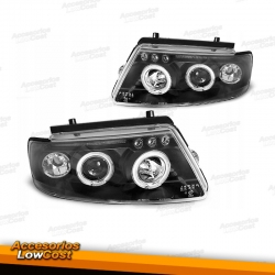 Faros con ojos de angel y lupa para VW PASSAT 3B Mod. 10/96 - 10/00. Fondo color negro.