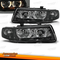 FAROS CON OJOS DE ÁNGEL PARA SEAT TOLEDO Y SEAT LEON (12/99-10/05)). CRISTAL CLARO-NEGRO.