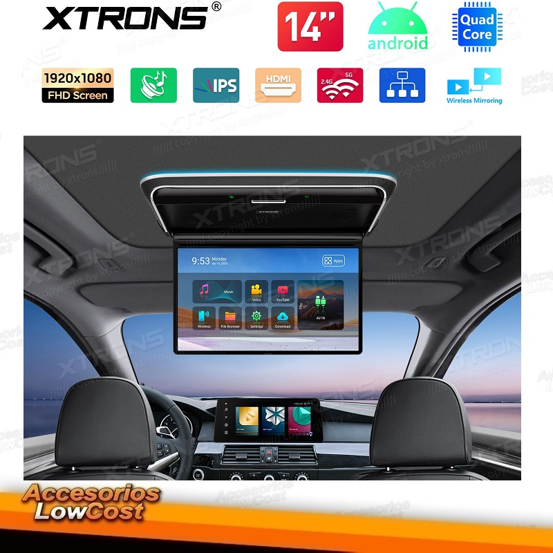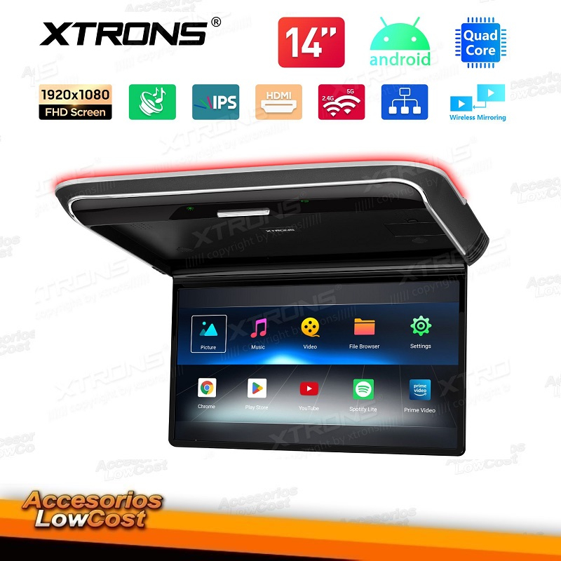 Pantalla techo Android para automóvil con pantalla IPS FHD de 14” y ultrafino