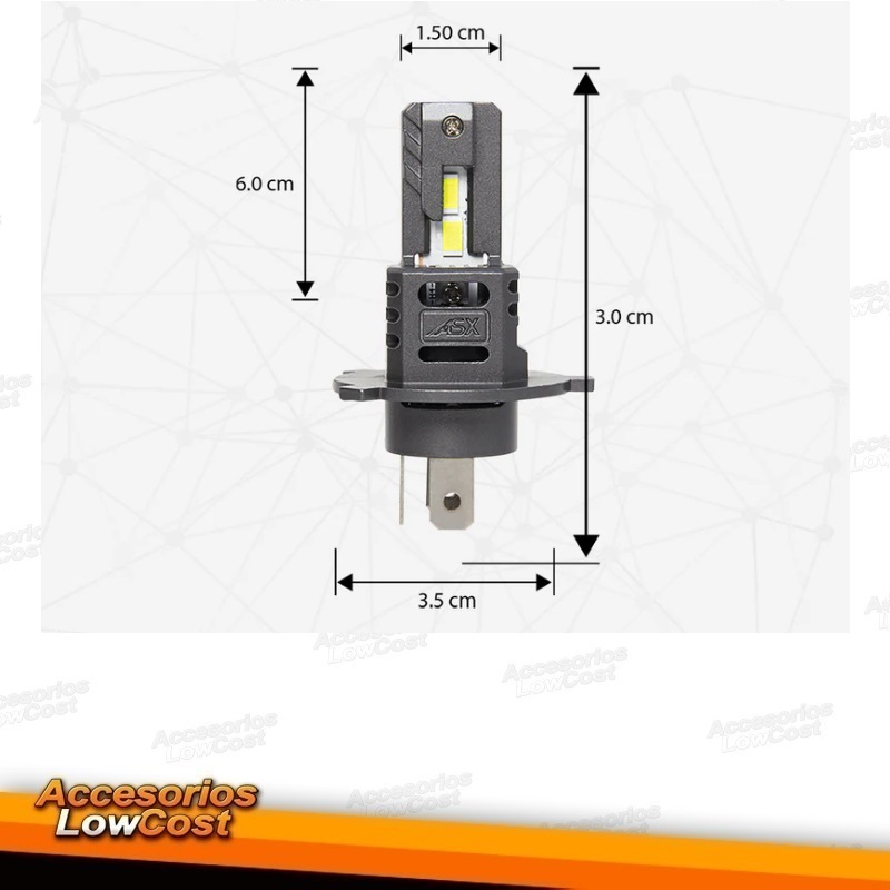 El LED Plug-in H4 mantiene un diseño 1:1 con las dimensiones de las lámparas halógenas tradicionales, permitiendo una instalación rápida y sencilla sin adaptadores. Con 6000K de luz blanca fría, mejora la visibilidad sin deslumbrar y cumple con la normativa ECE R10, garantizando compatibilidad electromagnética.