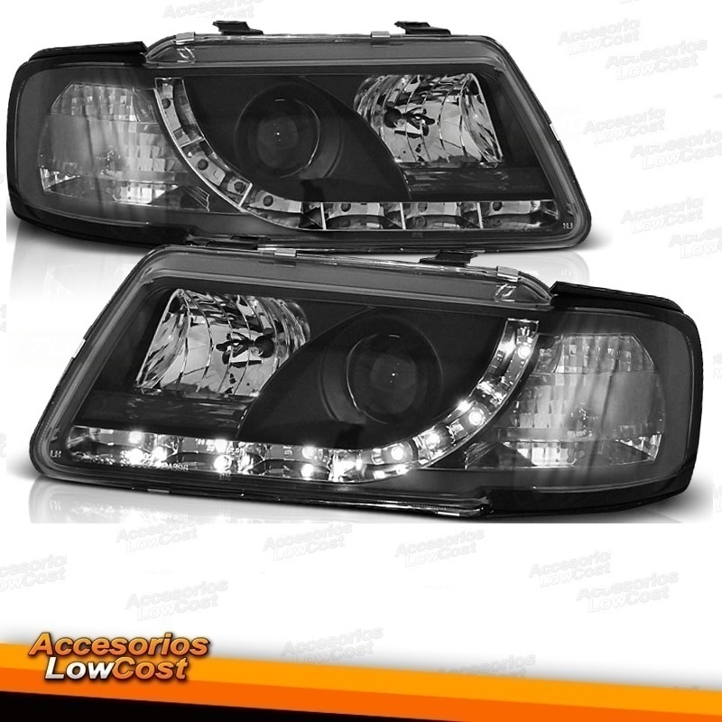 Faros con LUZ DIURNA LED, y lupa efecto xenon, para Audi A3 8L 8/96 - 8/00. Fondo color Negro. Incluye bombillas: H1 / H1 . En el precio se incluyen los dos faros Homologación E-Mark (certificado europeo), grabado en el cristal del faro. Fabricacion alemana, garantia 100%. Posibilidad de envio con kit de xenon.