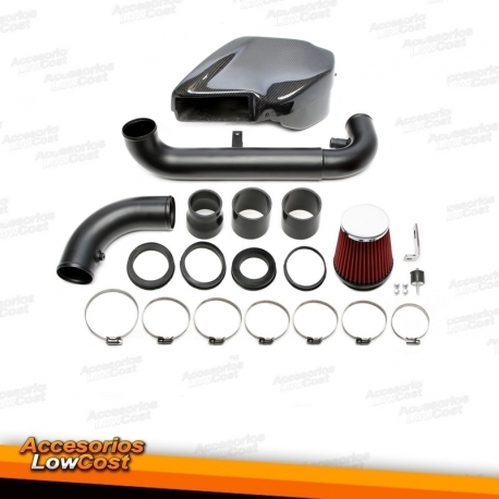 Admisión de carbono con filtro cónico y tubo para conectar.