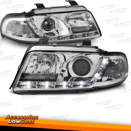 FAROS LED LUZ DIURNA PARA AUDI A4 B5 (99-01). FONDO CROMO.