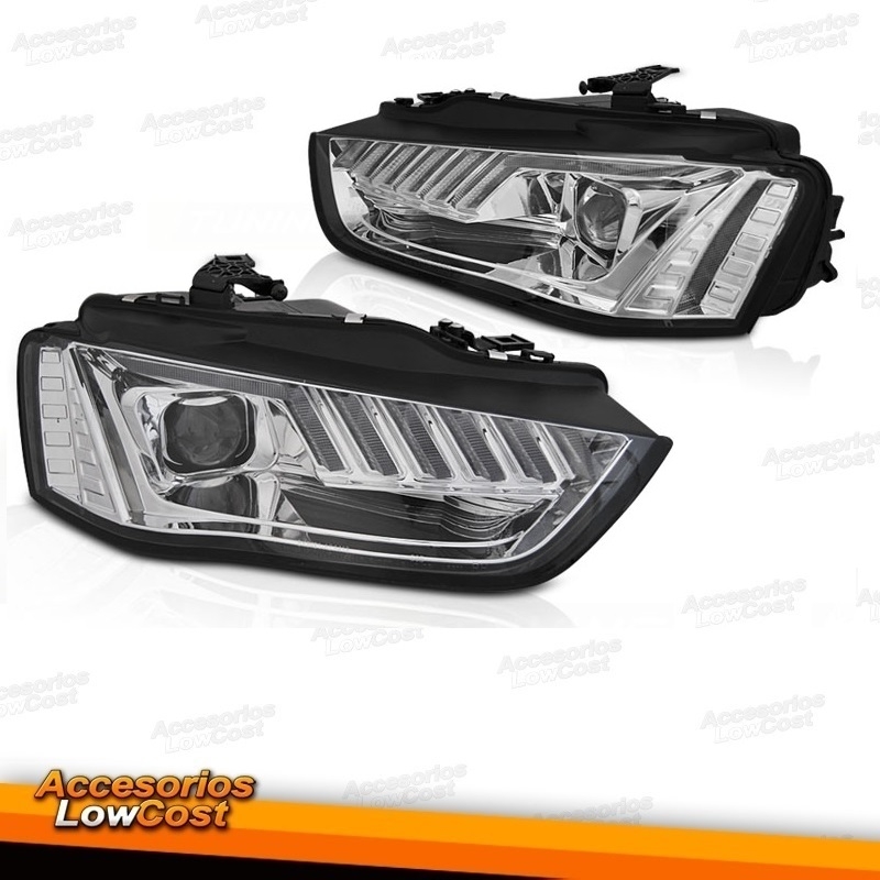 FAROS DELANTEROS CON LUZ DIURNA LED PARA AUDI A4 B8, 12-15, FONDO CROMO.