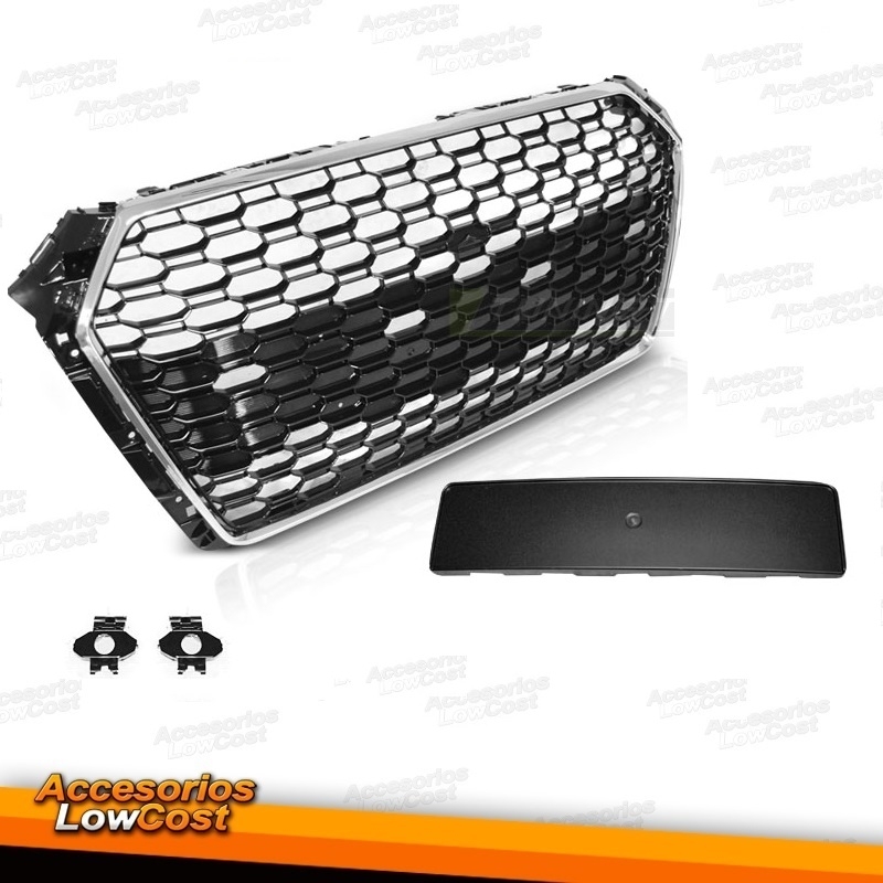 PARRILLA FRONTAL PARA AUDI A4 B9 2015-2019, NEGRO BRILLO BRODE CROMO, LOOK RS