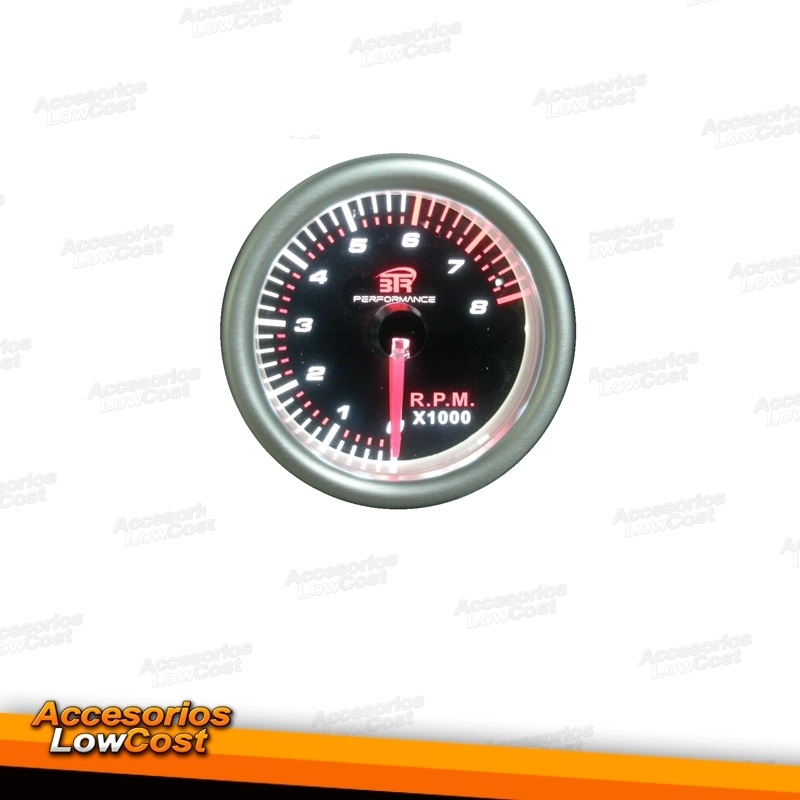 RELOJ TACÓMETRO DE 8000 RPM, 52MM. COLOR NEGRO.