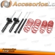 Kit compuesto por 4 amortiguadores de vástago corto deportivos y 4 muelles, que rebajan la altura del coche.