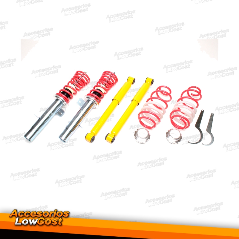 Nuevo modelo de doble muelle, regulables en altura (hasta -70 mm) y en dureza, variable según altura; cuanto más rebajadas, más duras, tanto en eje delantero como en eje trasero.Proporcionan un mayor agarre y un mejor paso por curva. Mejora tu experiencia de conducción con estos amortiguadores deportivos regulables, a la vez que cambias la imagen del coche.