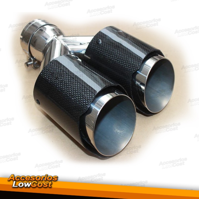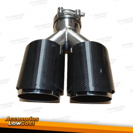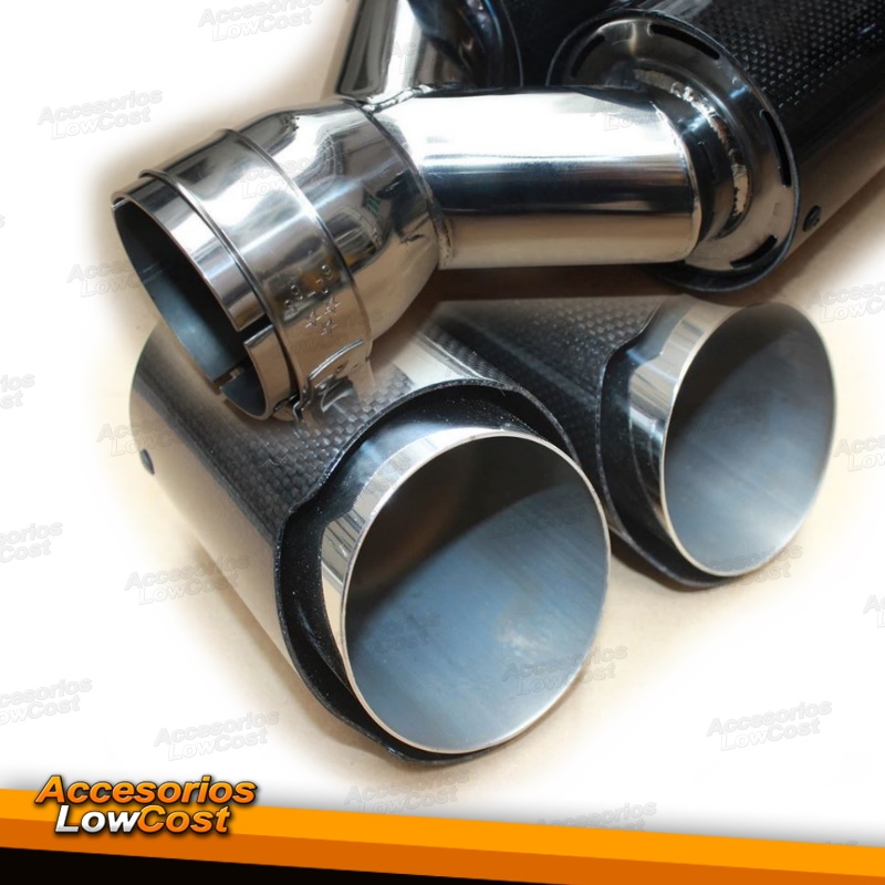 COLA DE ESCAPE UNIVERSAL REDONDA DOBLE TIPO CARBONO BRILLANTE, SALIDA 89mm, ENTRADA 63mm