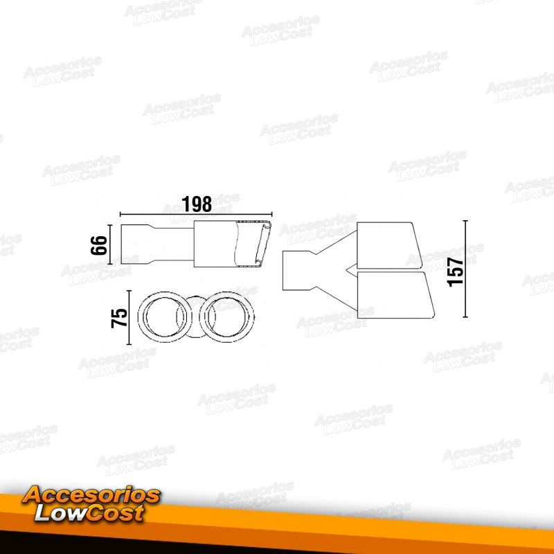 Cola de escape doble universal en acero inox. para el lado DERECHO.