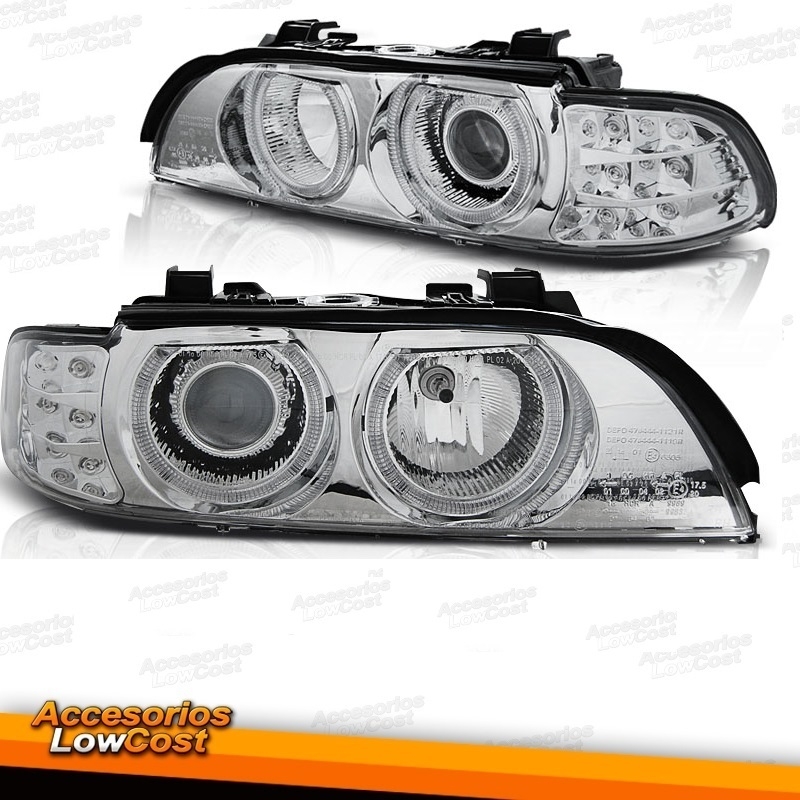 FAROS CON OJOS DE ÁNGEL E INTERMITENTES LED PARA BMW SERIE 5 E39 (95-03), H7+H7, FONDO CROMO
