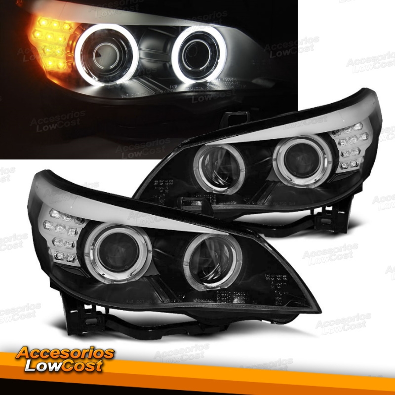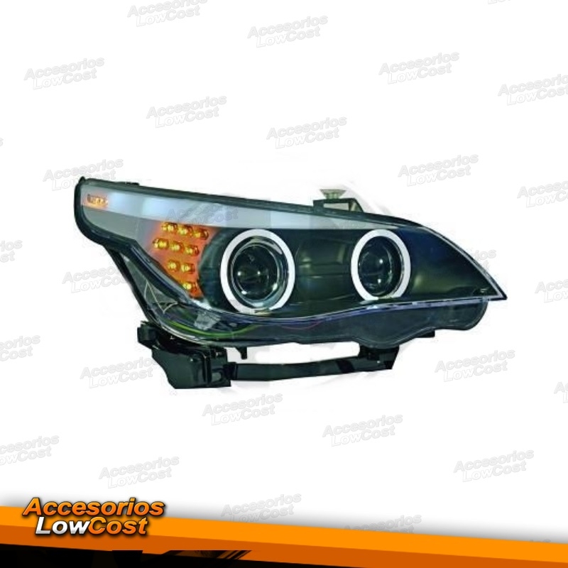 FAROS OJOS DE ANGEL XENON CCFL BMW E60, 05-07. FONDO NEGRO; BOMBILLAS D1S + H7.