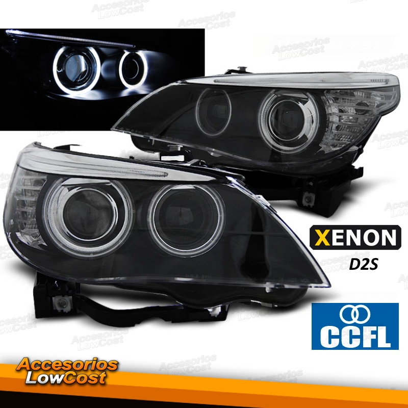 FAROS OJOS DE ANGEL XENON CCFL BMW E60 (03-04). FONDO NEGRO. BOMBILLAS D2S + H7