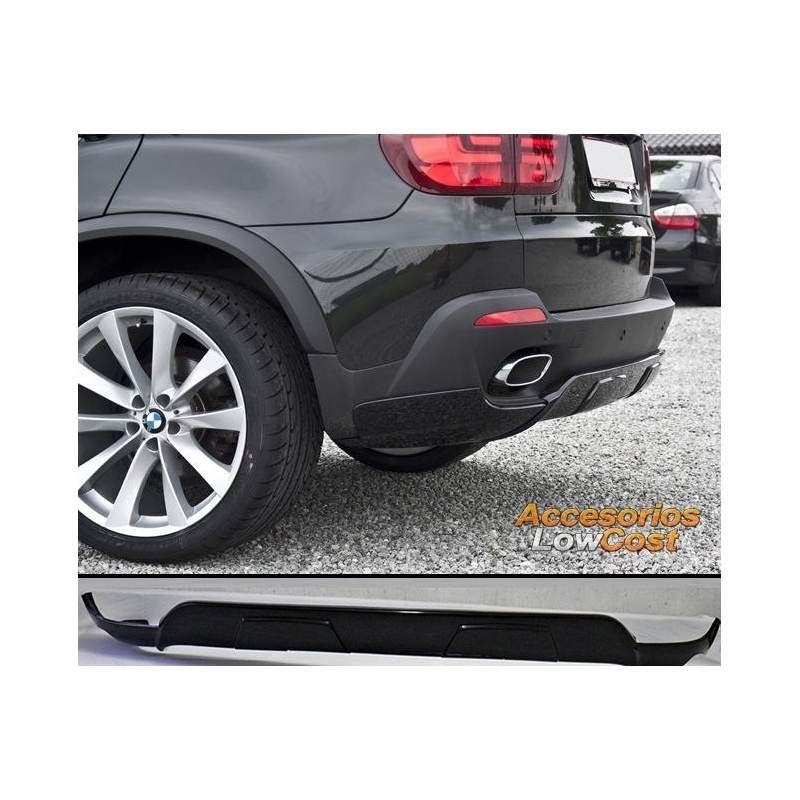 Spoiler para paragolpes trasero fabricado en plástico ABS con refuerzo interior en fibra de vidrio muy resistente y a la vez flexible, de fácil instalación, sin modificación alguna, dale un toque más deportivo a tu coche. Válido para BMW X5 E70 (07->).