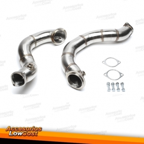 Con la downpipe aumentamos el diámetro de la tubería en la salida del turbo conseguiremos una mejor salida de los gases y menos carga para los turbo compresores, lo que se traduce en un aumento de potencia.