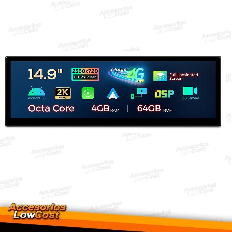 Radio navegador GPS Android de 14.9 pulgadas, 4+64 GB, Snapdragon 680, pantalla 2K, 4G