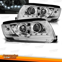 FAROS OJOS DE ANGEL FABIA,99-07; TYC+ SISTEMA DE AUTOREGULACIÓN DE FAROS; H7/H3. CRISTAL CLARO-CROMADO.