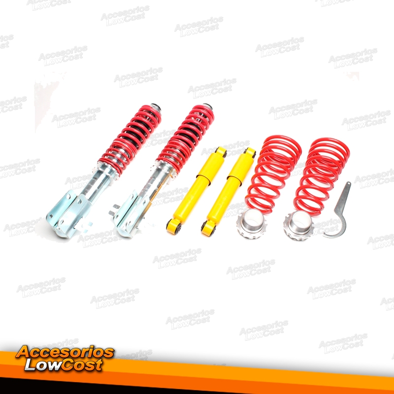 Nuevo modelo de doble muelle, regulables en altura (hasta -70 mm) y en dureza, variable según altura; cuanto más rebajadas, más duras, tanto en eje delantero como en eje trasero.Proporcionan un mayor agarre y un mejor paso por curva. Mejora tu experiencia de conducción con estos amortiguadores deportivos regulables, a la vez que cambias la imagen del coche.