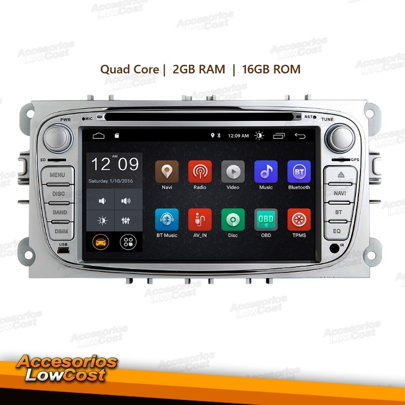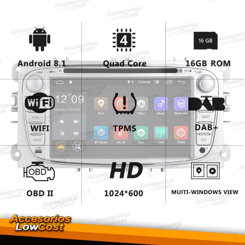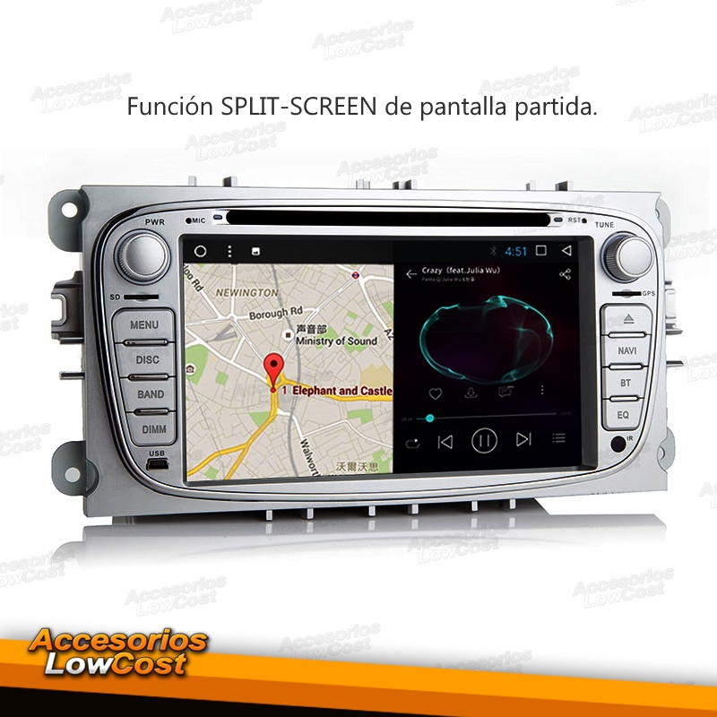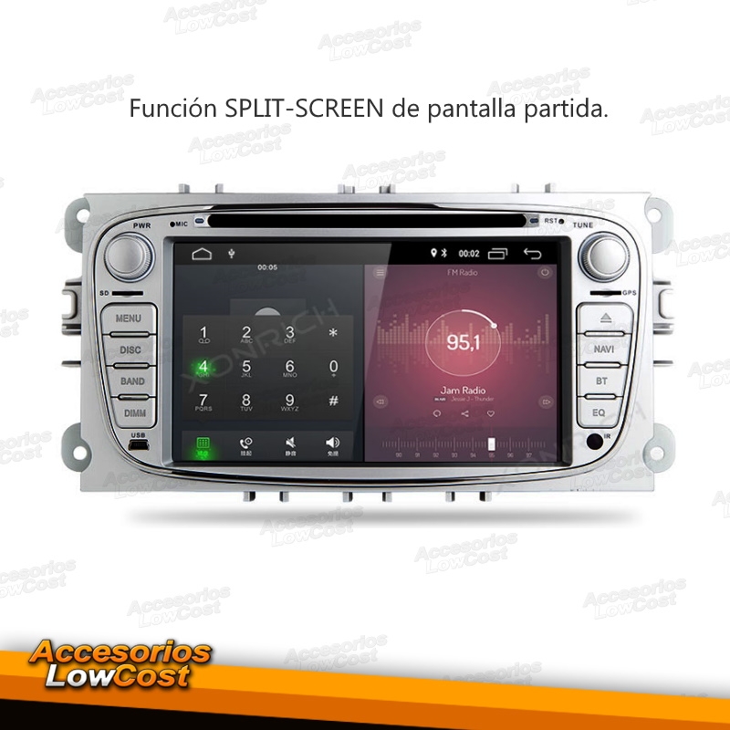 NAVEGADOR MULTIMEDIA ANDROID 11.0 GPS DVD 2 DIN HD TÁCTIL, ESPECÍFICO PARA FORD, COLOR PLATA