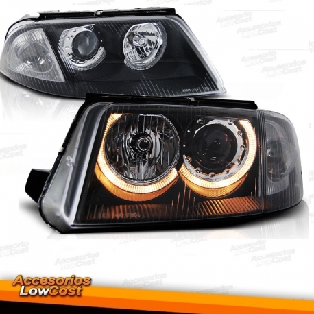 Faros con ojos de angel y lupa para VW PASSAT 3Bg Mod. 10/00 - 3/05. Fondo color negro.