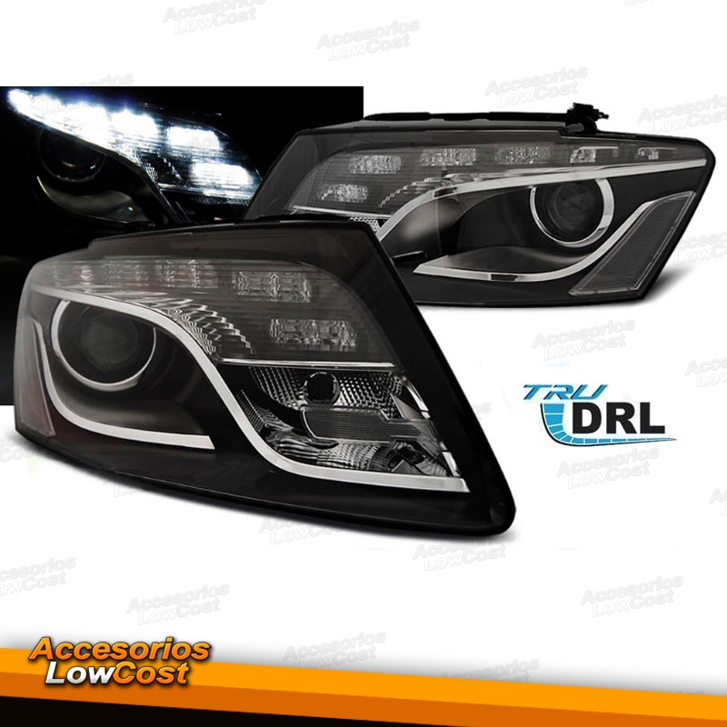 FAROS DELANTEROS CON LUZ DIURNA LED PARA AUDI Q5 (08-12), H7, FONDO NEGRO.