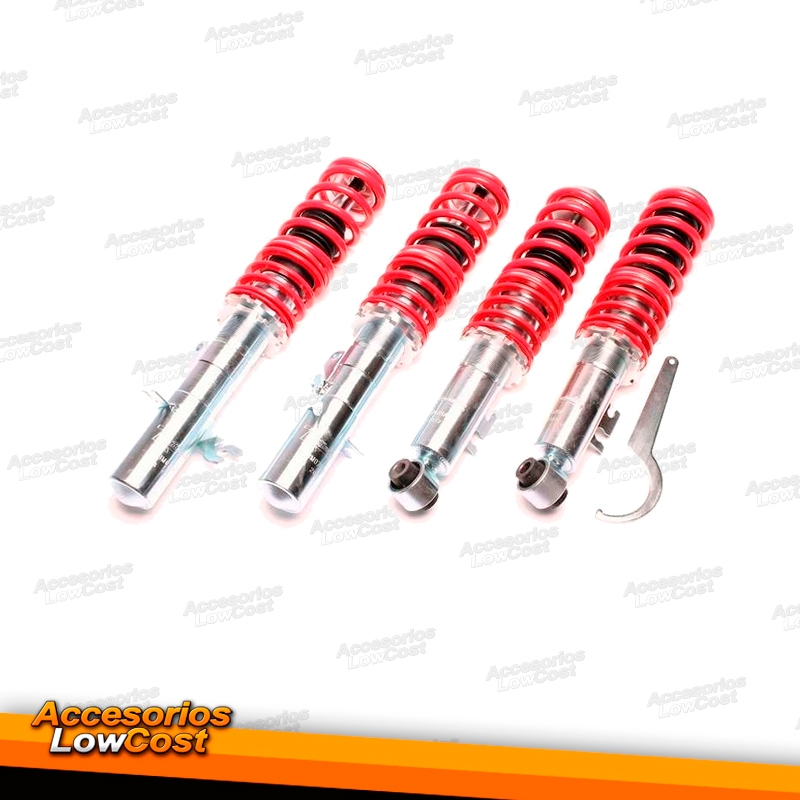 Nuevo modelo de doble muelle, regulables en altura (hasta -70 mm) y en dureza, variable según altura; cuanto más rebajadas, más duras, tanto en eje delantero como en eje trasero.Proporcionan un mayor agarre y un mejor paso por curva. Mejora tu experiencia de conducción con estos amortiguadores deportivos regulables, a la vez que cambias la imagen del coche.