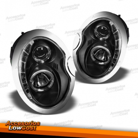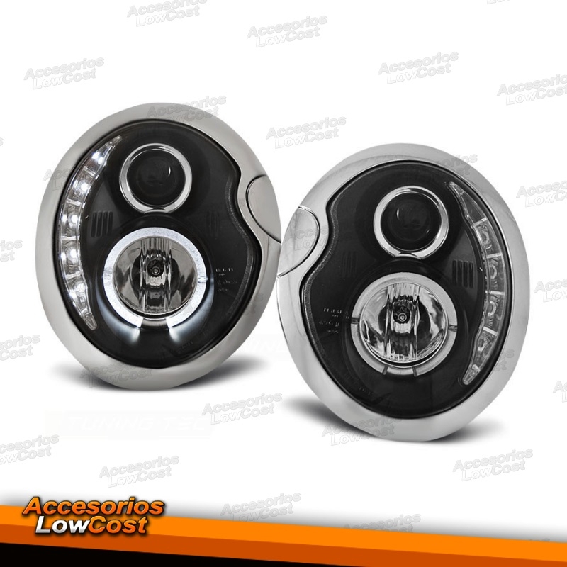 FAROS LUZ DIURNA MINI, 01-06; CRISTAL CLARO/NEGRO. INSTALACIÓN SENCILLA SIN MODIFICACIÓN ALGUNA EN EL VEHÍCULO. HOMOLOGACIÓN E-MARK (CERTIFICADO EUROPEO) GRABADA EN EL CRISTAL DEL FARO. GARANTÍA 100%.