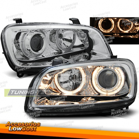 Faros delanteros proyectores con llantas de doble halo.