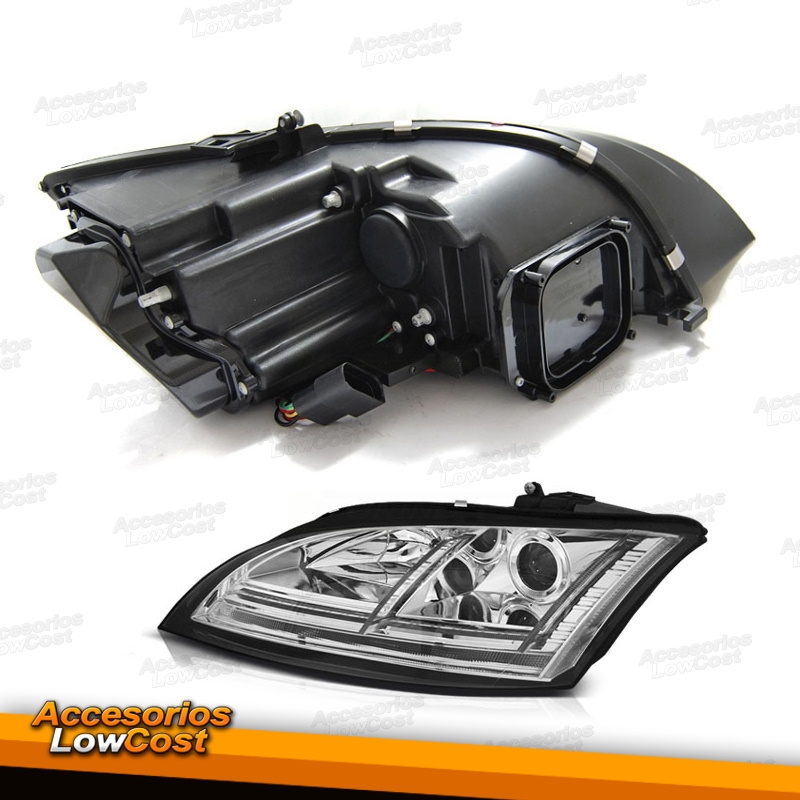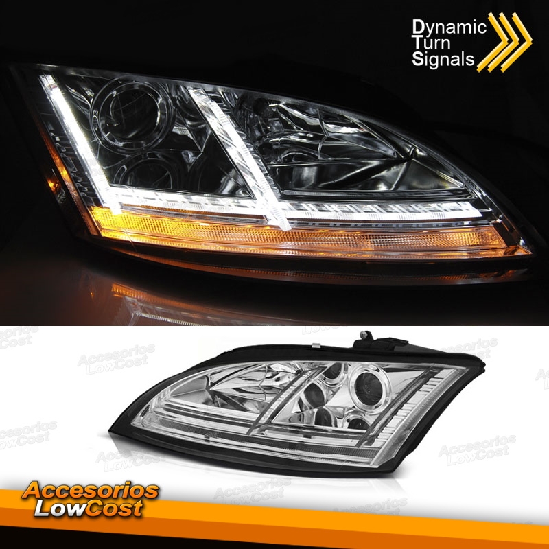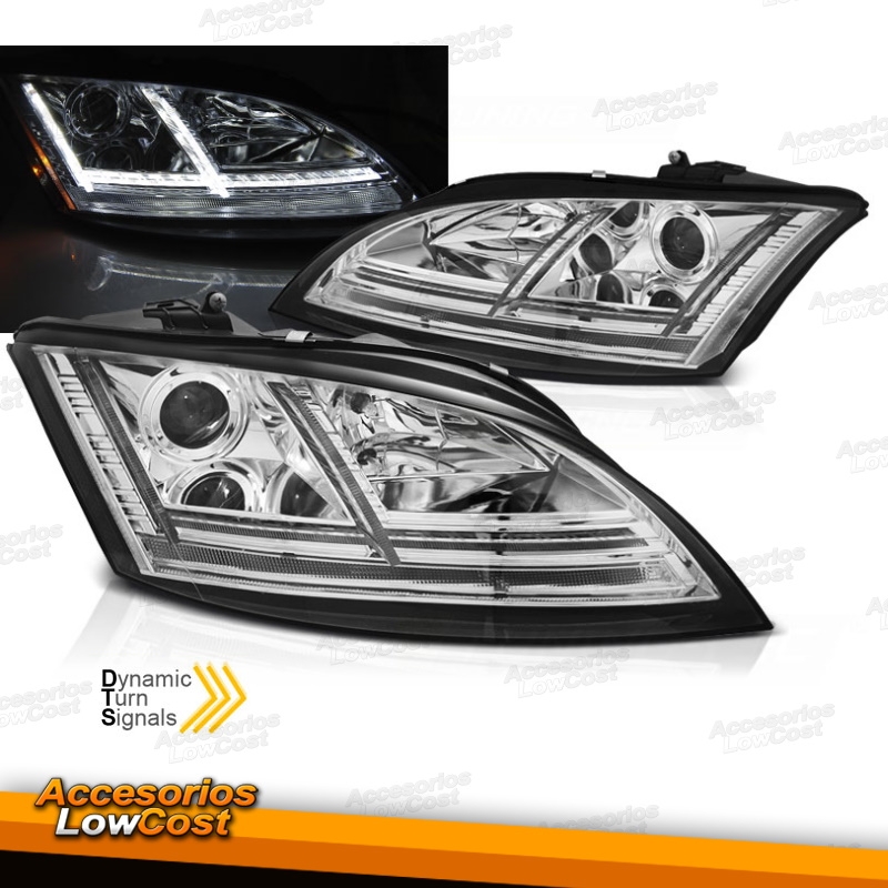 FAROS DELANTEROS CON LUZ DIURNA LED PARA AUDI TT 8J (06-10), H7+H1, CROMO.