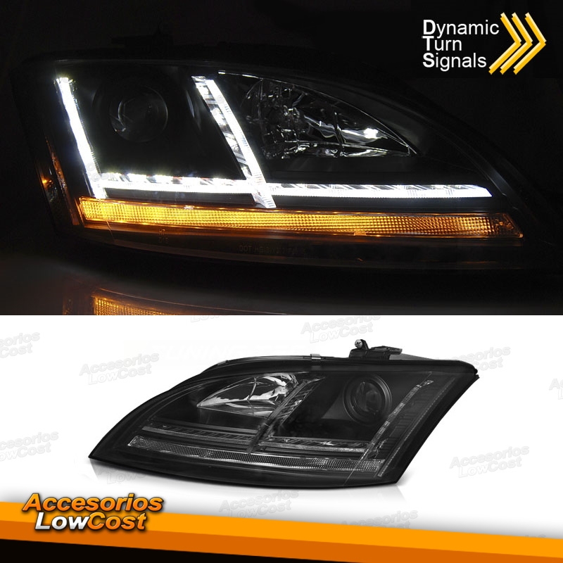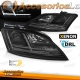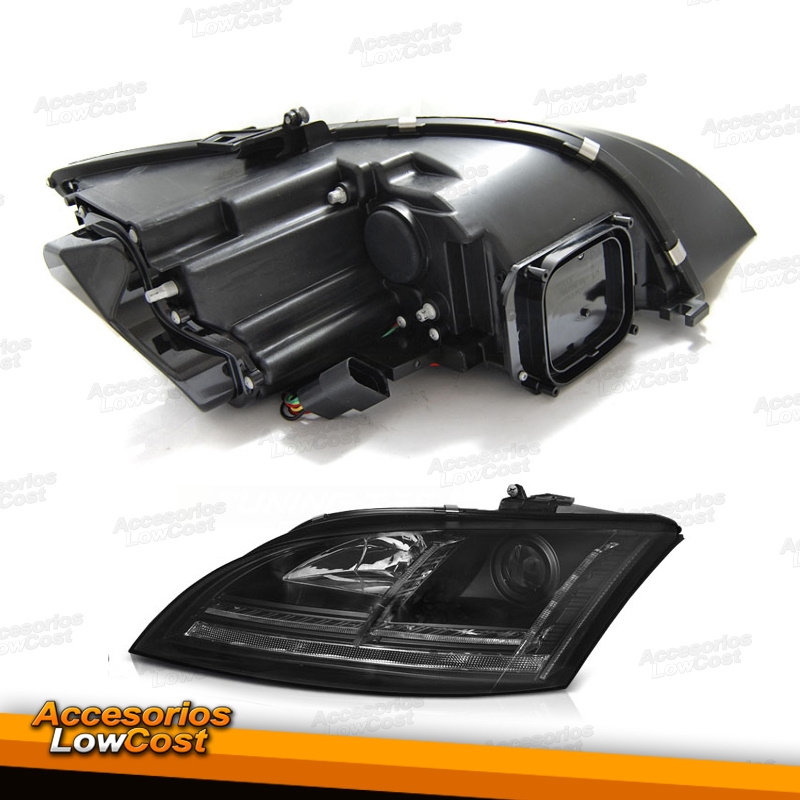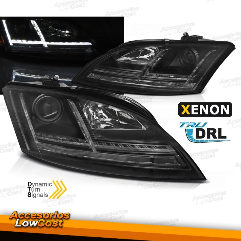 FAROS DELANTEROS XENON CON LUZ DIURNA LED PARA AUDI TT 8J (06-10), D1S+H1, FONDO NEGRO.