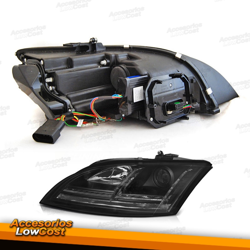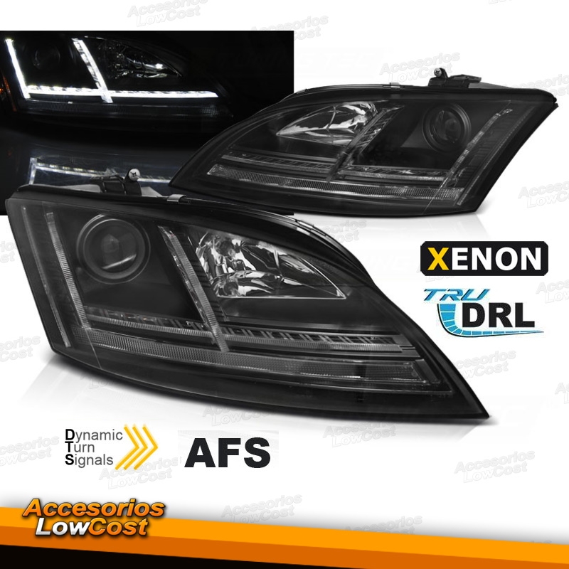 FAROS DELANTEROS XENON CON LUZ DIURNA LED PARA AUDI TT 8J (06-10) AFS, D1S+H1, FONDO NEGRO.