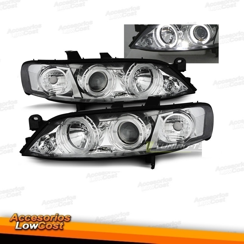 FAROS PARA OPEL VECTRA B 96-98 OJOS ANGEL FONDO CROMO