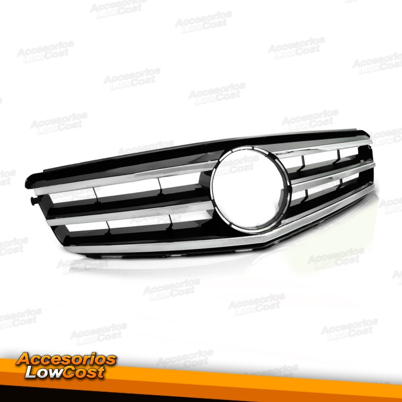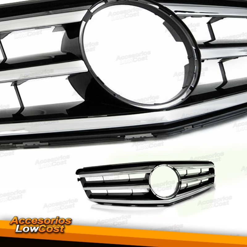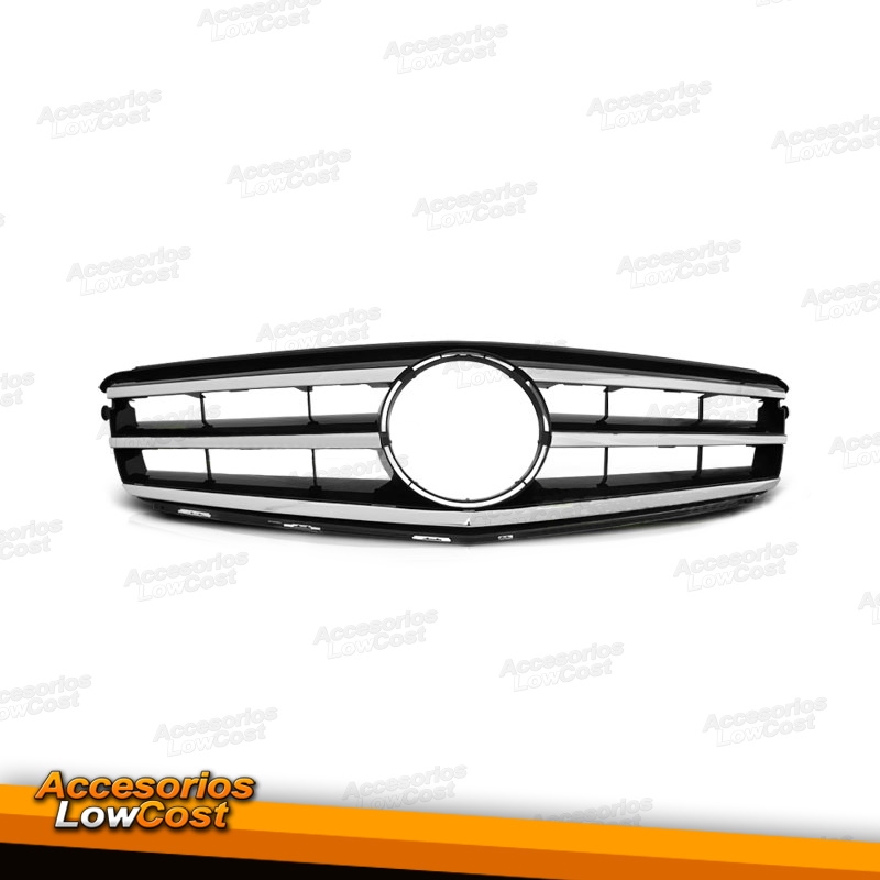 REJILLA DELANTERA DEPORTIVA PARA MERCEDES CLASE C W204 (07-14), LINEAS CROMO NEGRO.