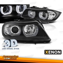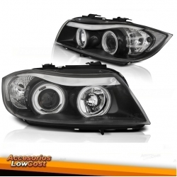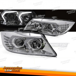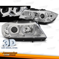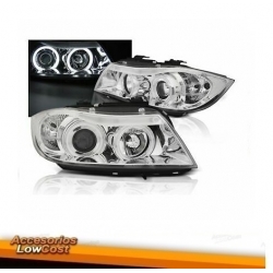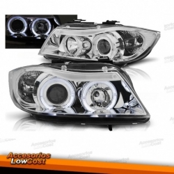 FAROS OJOS DE ANGEL CON LUCES DE LED BMW E90 05-08 CRISTAL CLARO-CROMADO