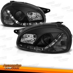 FARÓIS COM LUZ DIURNA LED COM PROJETOR ( OLHO DE BOI ) PARA OPEL CORSA B de 1993 a 2000.