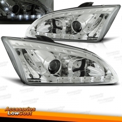 FARÓIS COM LUZ DIURNA LED COM PROJETOR ( OLHO DE BOI ) PARA FORD FOCUS MK2 de 2004 a 2008.