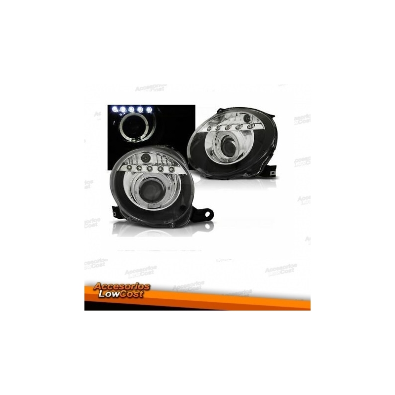 FARÓIS ANGEL EYES COM PROJETOR ( OLHO DE BOI ) PARA FIAT 500 APÓS 2007.