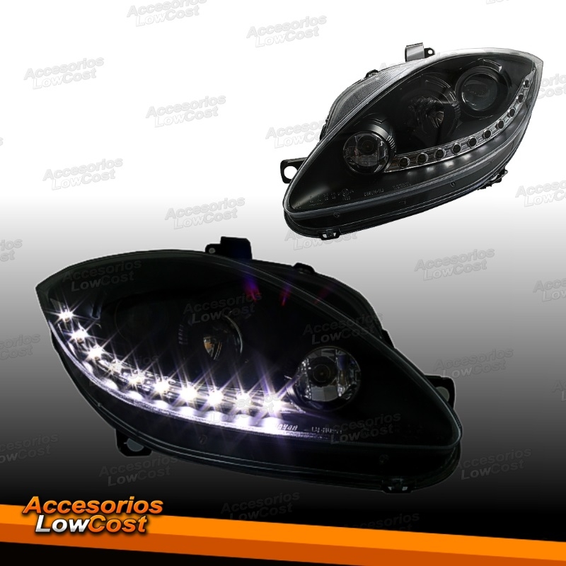 FARÓIS COM LUZ DIURNA LED SEAT LEON 1P, ALTEA 5P E TOLEDO 5P(04-09).
