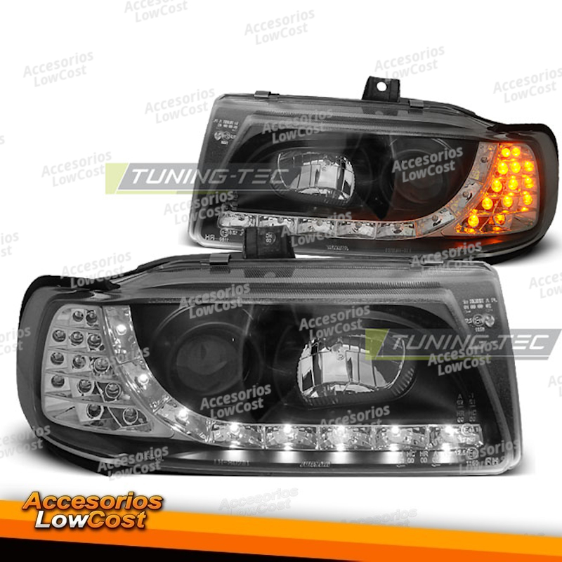 Faróis de projetor com luz de estacionamento LED.