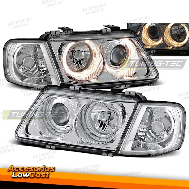 FARÓIS CROMADOS ANGEL EYES para AUDI A3 08.96-08.00