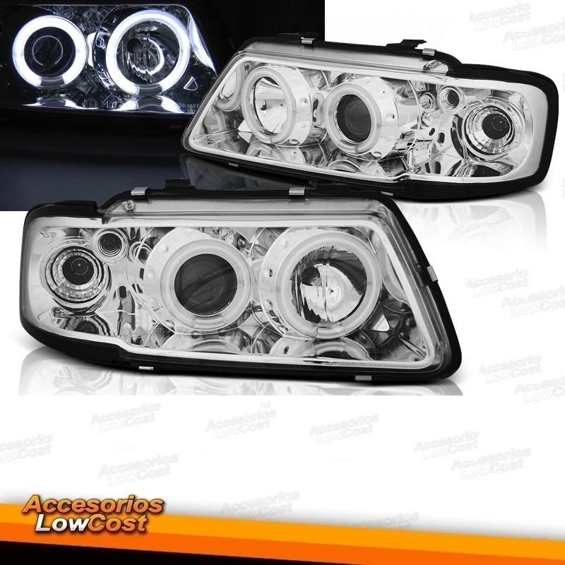 FARÓIS ANGEL EYES COM PROJETOR ( OLHO DE BOI ) PARA AUDI A3 8L de 1996 a 2000.