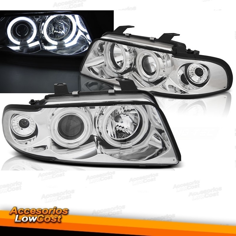 FARÓIS ANGEL EYES CCFL COM PROJETOR ( OLHO DE BOI ) PARA AUDI A4 B5 DE 1995 a 1998.