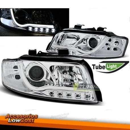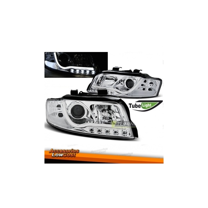 FARÓIS COM LUZ DIURNA LED TFL COM PROJETOR ( OLHO DE BOI ) PARA AUDI A4 B6 de 2000 a 2004.