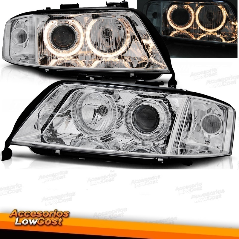 FARÓIS ANGEL EYES COM PROJETOR ( OLHO DE BOI ) AUDI A6 4B ( 10/99-5/01 ).