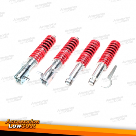 Suspensão de alta performance que permite rebaixar o seu veículo em altura (ATÉ-70 mm) permite rebaixar conforme a sua preferência tanto no eixo traseiro como dianterio. Também poderá afinar a suspensão do automóvel de acordo com as pretensões do seu condutor, variando o comportamento entre o confortável a desportivo e mais duro, ambas as soluções com comprovadas melhorias ao nível do comportamento dinâmico.